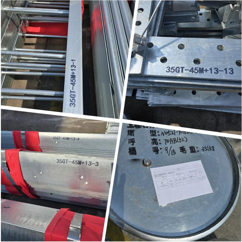 L'image ci-dessous montre l'inspection et l'emballage du 3 pattes tour de communication en acier d'angle . Dans le même temps, nous avons une fois de plus testé l'épaisseur de la couche de zinc de différentes sections pour garantir qu'elles répondent toutes à la norme ASTM A123.
