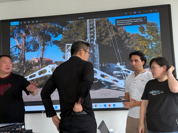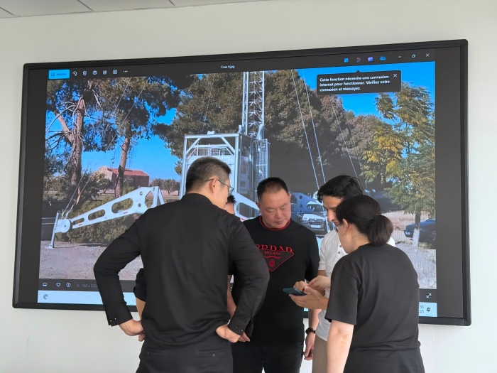 La photo montre des représentants du groupe marocain Netis visitant et inspectant notre ligne de production de cellules sur roues. Le client s'est concentré sur Cellule hydraulique sur roues de 30 mètres et le Armoire de télécommunications d'urgence de 12 mètres et a exprimé un intérêt initial pour une coopération.